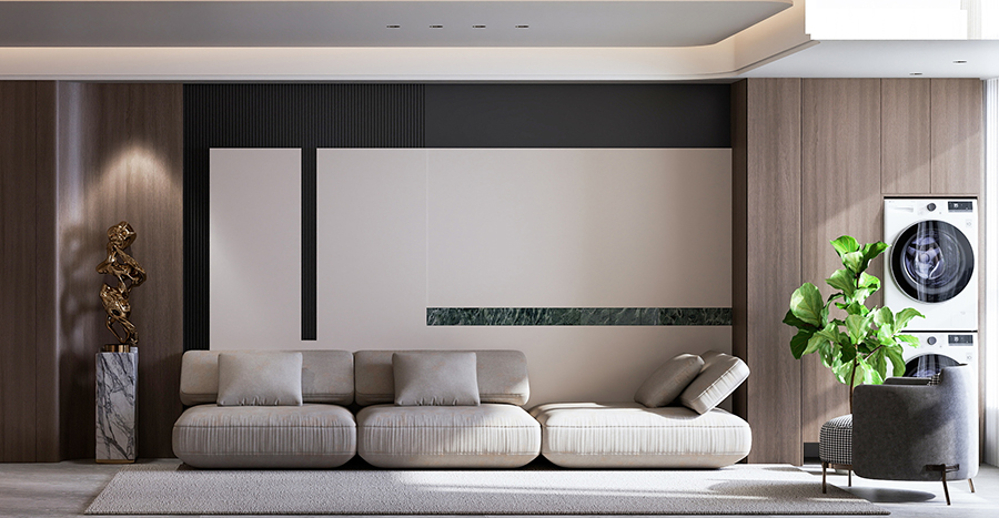 生活的質(zhì)感,藏于細(xì)節(jié),現(xiàn)于設(shè)計師的筆觸。一道曲形輪廓,便將餐邊柜與沙發(fā)墻悄然銜接;一方雕塑靜立,便瞬間點亮一隅藝術(shù)角落。