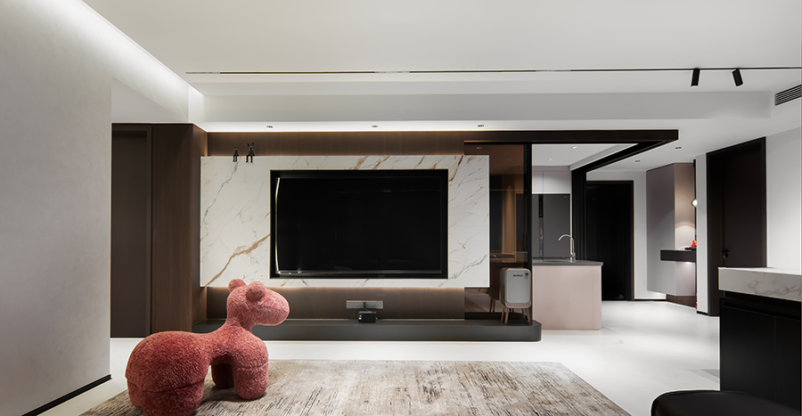 硬裝上拋開(kāi)復(fù)雜裝飾,藉由材質(zhì)本身的細(xì)膩肌理搭配明暗碰撞,就將精致感拿捏得恰到好處。等夜幕落下,暖光緩緩亮起,整個(gè)空間都裹著溫柔,只剩一室安然。